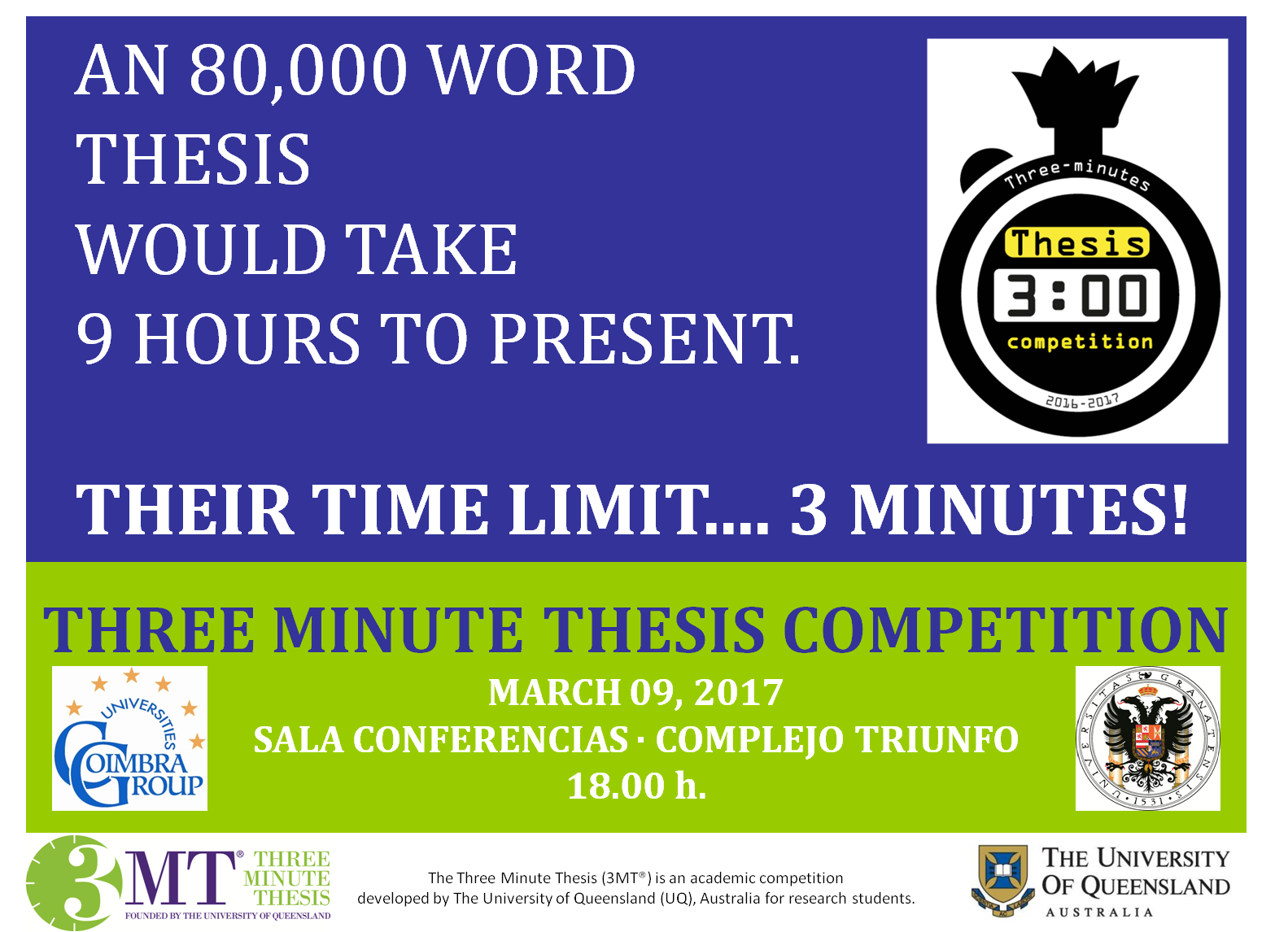 Los finalistas del concurso 3MT defendieron sus charlas el jueves 9 de marzo de 2017, a las 18.00 horas, en la Sala de Conferencias del Complejo Triunfo.