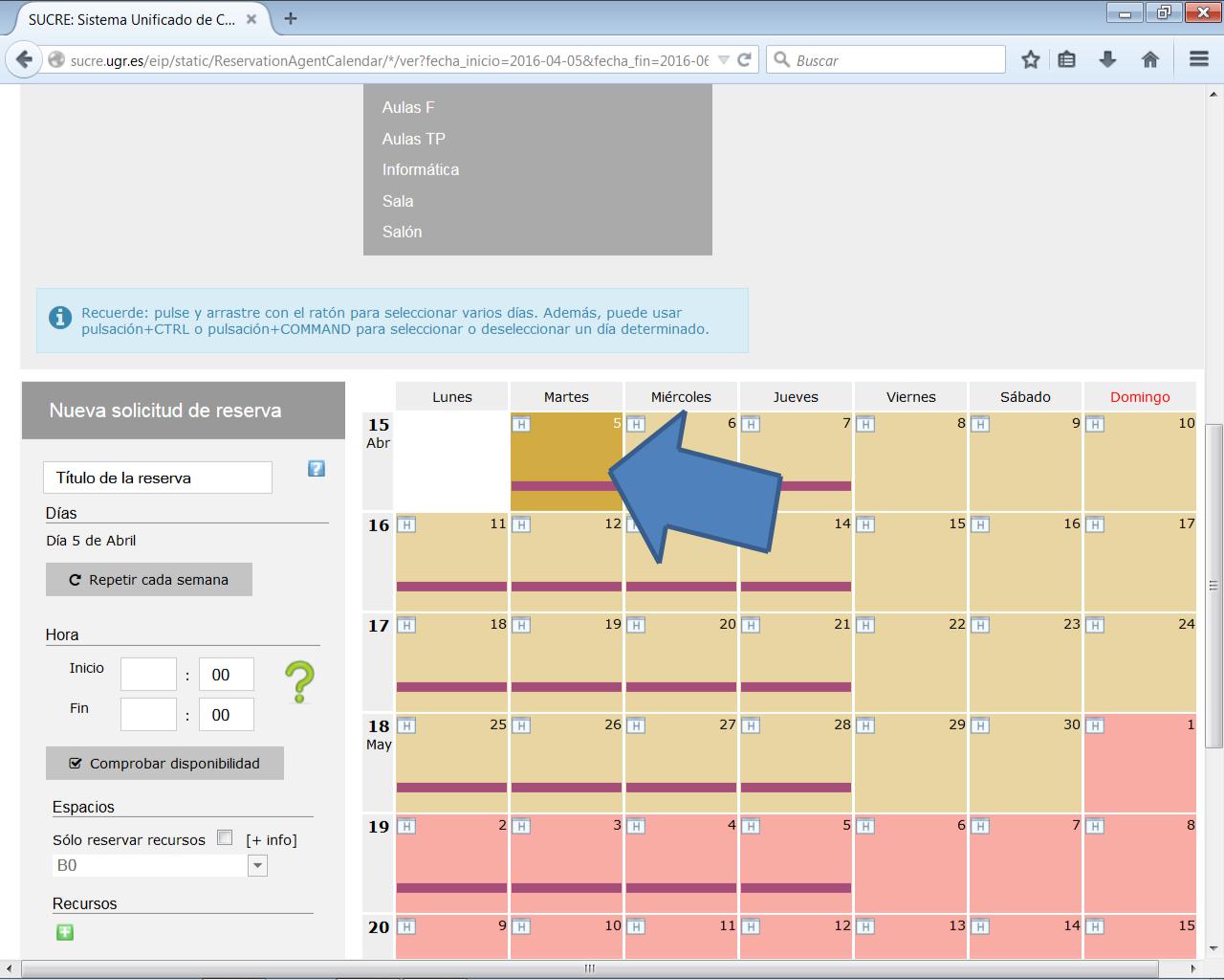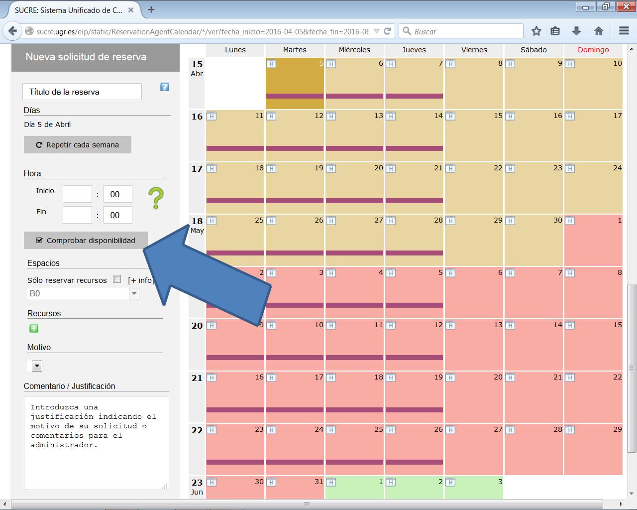 Una vez seleccionados los días y horas que se quieren reservar, se debe comprobar la disponibilidad: