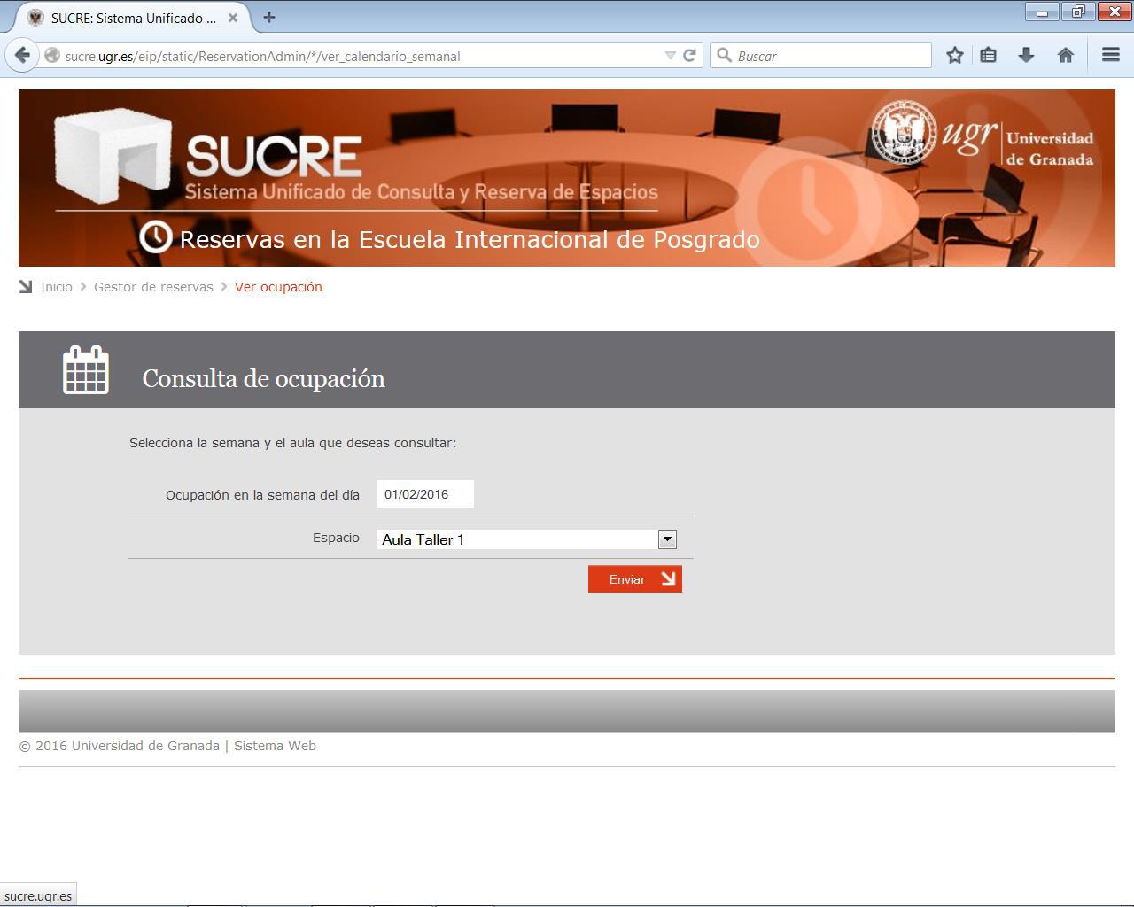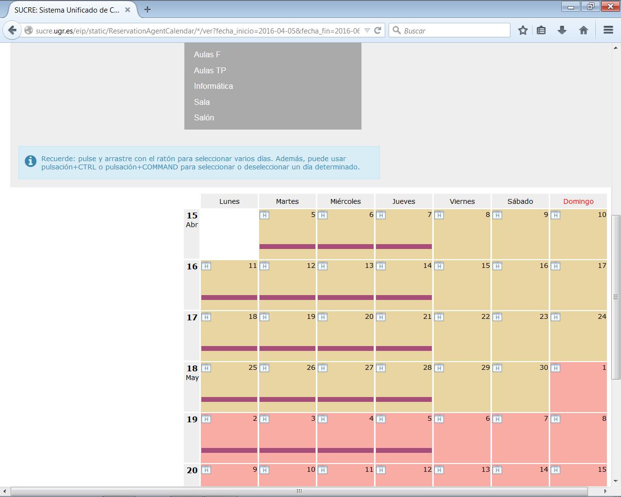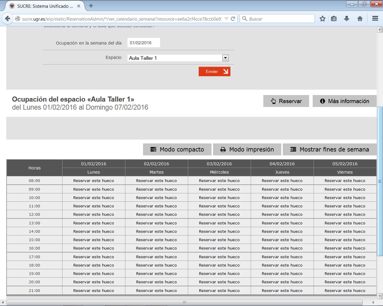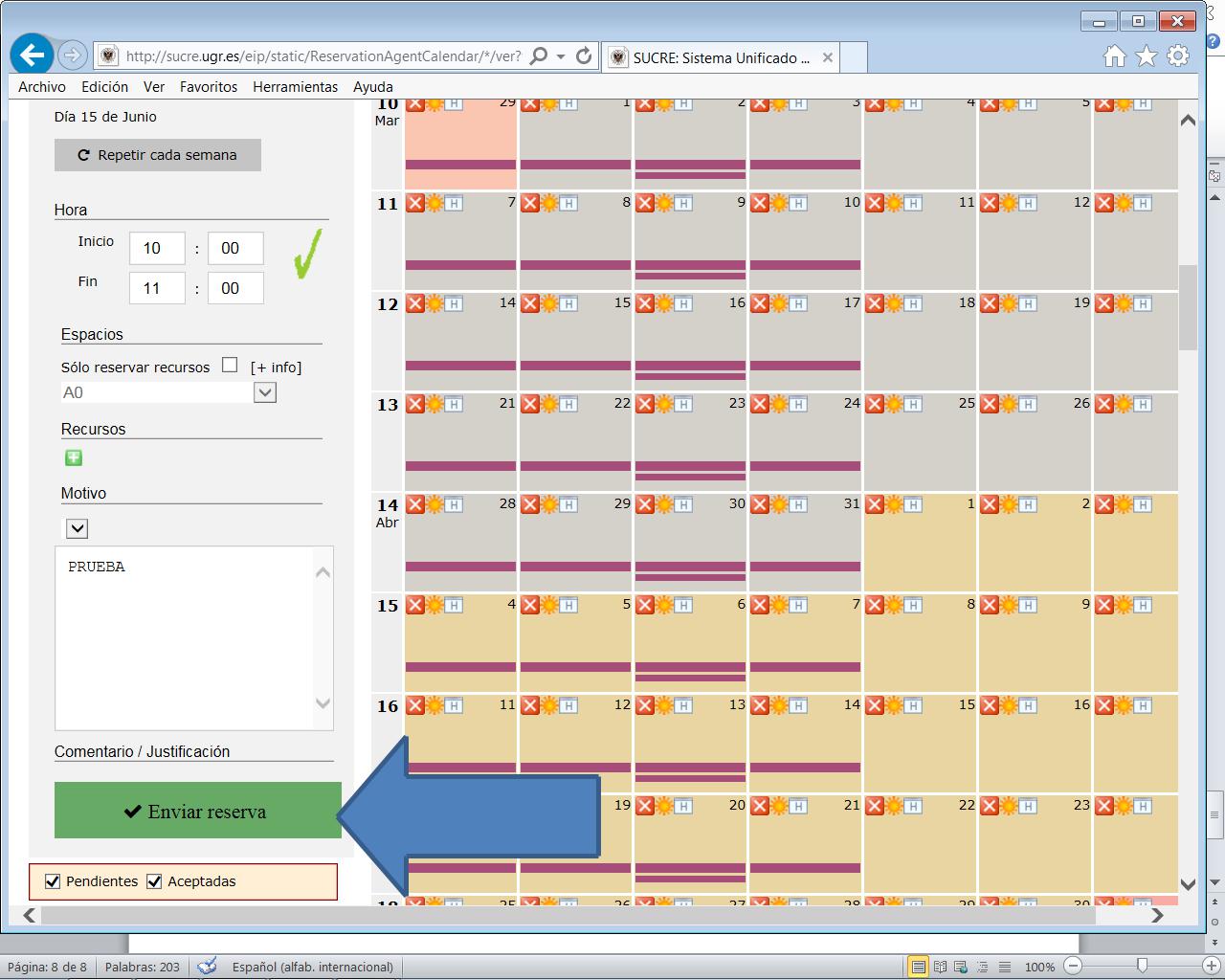Si pulsa “enviar”, aparecerá el espacio deseado con las reservas que ya están aceptadas y los huecos que queden disponibles, tal como aparecen el ejemplo mostrado a continuación: