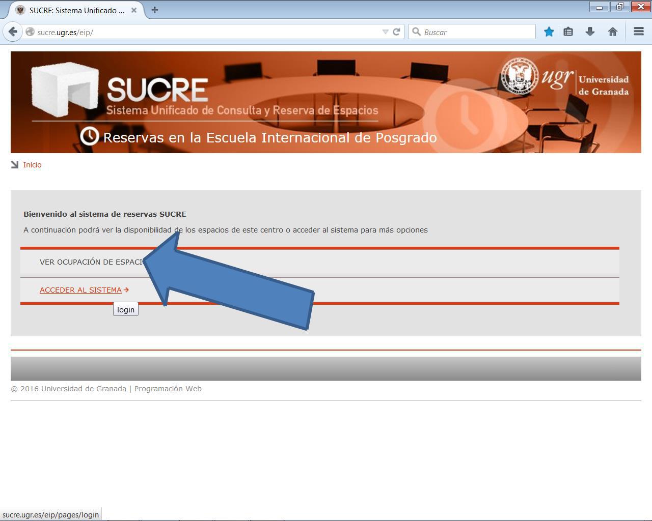 Pinchando en “Ver ocupación de espacios”, se puede consultar la situación de las aulas y salas sin necesidad de introducir el usuario y la contraseña.