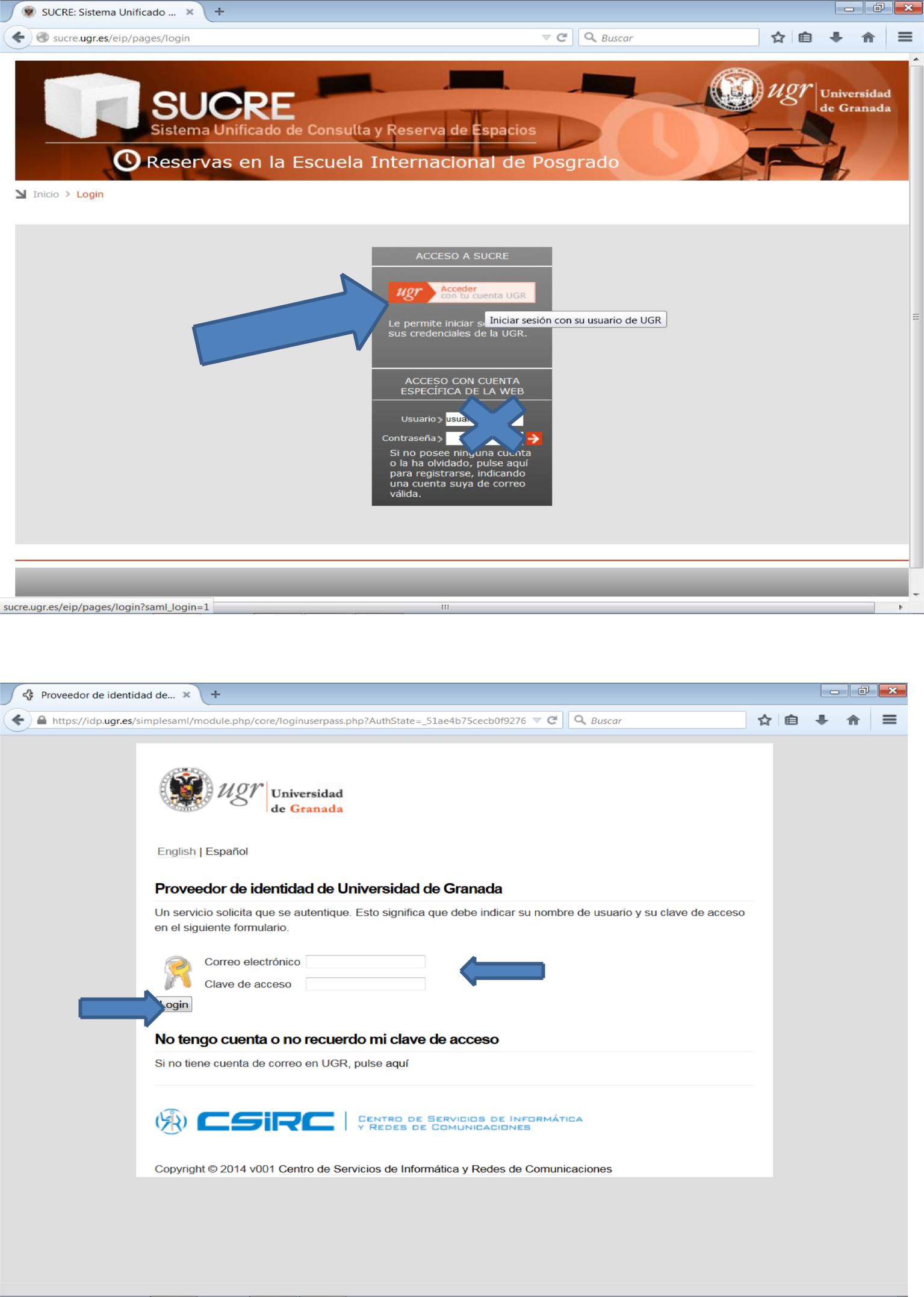 Aparecerá esta pantalla en la que habrá que pinchar sobre “Acceder con tu cuenta UGR“.