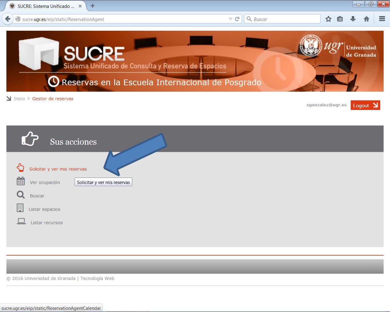 En esta pantalla, se seleccionará el espacio y el día que se quiere consultar: